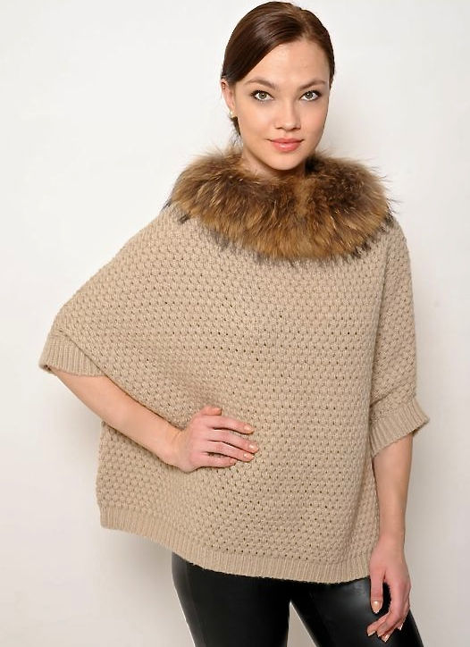 Style#LRKN66B ~ Linda Richards ~ Knit Poncho with RACCOON Collar ~$295.00~ Cream, Blush, Lavender ~ One Size